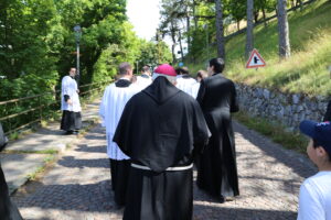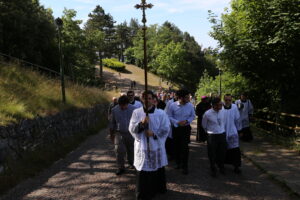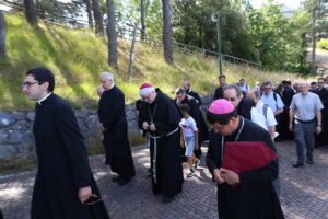 La celebrazione è stata preceduta, alle ore 10, dalla processione dalla Cappella dell’Apparizione ed è giunta al Santuario recitando il Santo Rosario.