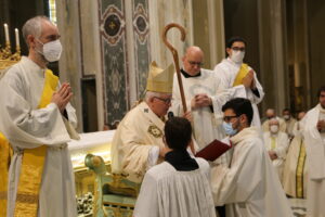 Ha quindi ammesso agli Ordini Sacri quattro seminaristi: Jacopo Luciani, Andrea Macchiavello, Gabriele Bachini e Francesco Quell’oller, ringraziandolo per la loro scelta a servizio dell’Arcidiocesi.
