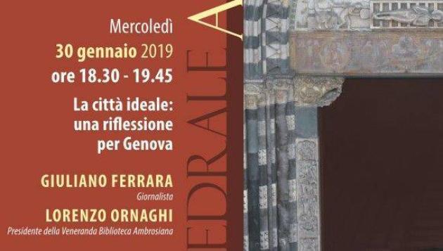 Mercoledì 30 gennaio torna l'appuntamento con Cattedrale Aperta, il secondo per questo anno pastorale. Alle ore 18.30 Giuliano Ferrara, giornalista, e Lorenzo Ornaghi, Presidente della Veneranda Biblioteca Ambrosiana, intervengono sul tema “La città ideale: una riflessione per Genova”. Conclusioni affidate al Card. Angelo Bagnasco.