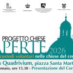 Martedì 13 gennaio alle ore 15.30 alla Sala Quadrivium la presentazione del Corso “Progetto Chiese aperte 2026” per i custodi volontari nelle chiese del centro storico. In allegato il programma degli incontri previsti alla Sala Quadrivium e nelle chiese. leggi »