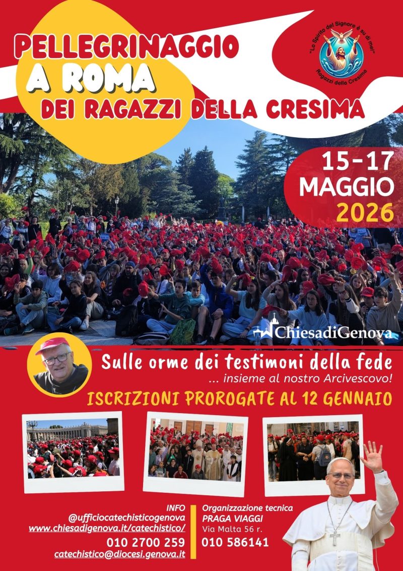 Nei giorni 15-17 maggio 2026 la nostra diocesi tornerà a vivere insieme un momento straordinario: il pellegrinaggio dei cresimandi a Roma. Non è semplicemente una gita, né solo un viaggio turistico nella Città Eterna. È un’esperienza che vuole toccare il cuore, aprire gli occhi e risvegliare lo spirito di ciascuno dei ragazzi che stanno per ricevere il sacramento della Confermazione. Ci sarà un’importante riunione informativa … Continua a leggere I RAGAZZI DELLA CRESIMA A ROMA 15-17 MAGGIO 2026
