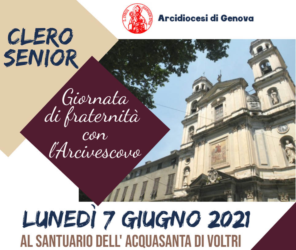 L a giornata di fraternità del Clero senior con l’Arcivescovo si svolgerà lunedì 7 giugno al Santuario dell’Acquasanta di Voltri con il seguente programma: