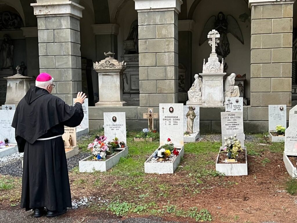 Al termine della funzione, l’Arcivescovo ha benedetto le tombe del cimitero di Staglieno, visitando in particolare modo il campo dove sono sepolti sacerdoti, religiosi e religiose.