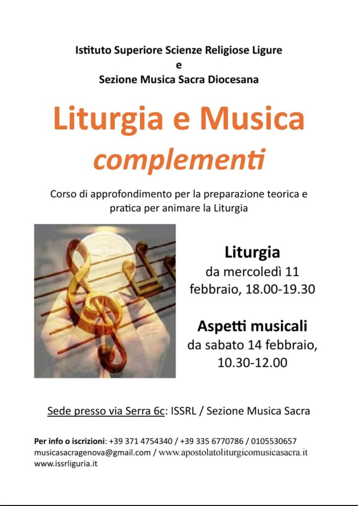 Il corso articolato in lezioni di Liturgia (presso ISSRL) e lezioni di Musica (presso Sezione di Musica sacra) si svolgerà tra i mesi di Febbraio e Maggio 2026 presso le sedi dei due Istituti (Via Serra 6c).