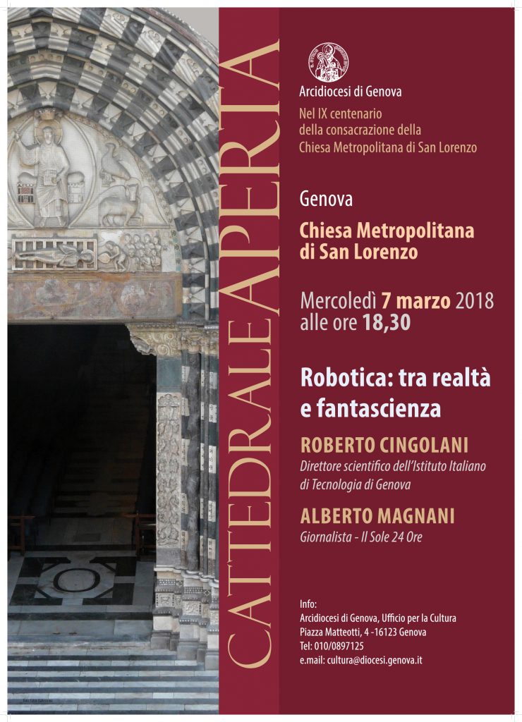 Relatori: Prof. Roberto Cingolani, Direttore scientifico dell’Istituto Italiano di tecnologia di Genova; Dott. Alberto Magnani, Giornalista – IL Sole 24 ore, sul tema  “Robotica: tra realtà e fantascienza”.