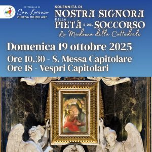 16 Ottobre 2025Notizie CattedraleDomenica 19 ottobre 2025 solennità di N. S. della Pietà e del Soccorso in Cattedrale Domenica 19 ottobre 2025 in Cattedrale le celebrazioni per la solennità di N. S. della Pietà e del Soccorso. Alle ore 10.30 S. Messa capitolare. Alle ore 18 Vespri Capitolari. condividi su