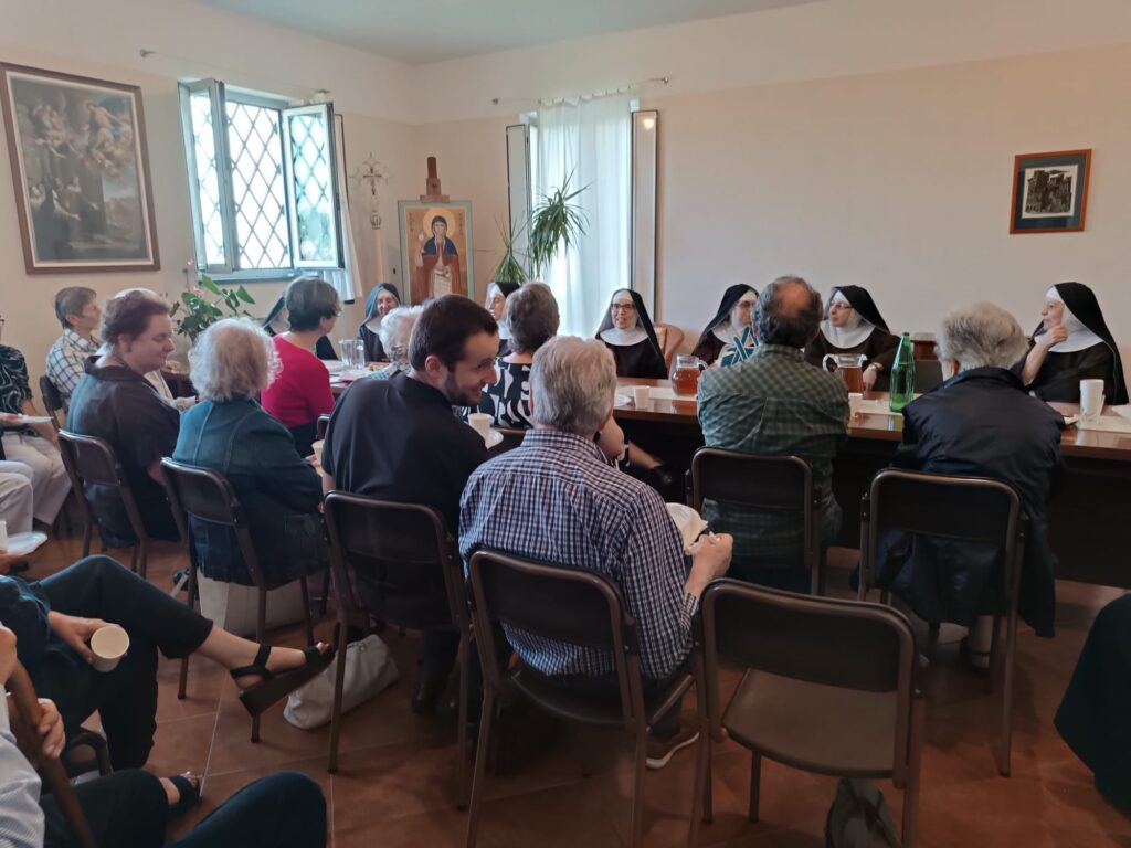 Al momento dello scambio della pace, spontaneamente tanti lasciano il loro posto per un abbraccio, un sorriso, una stretta di mano: è un bisogno del cuore. Con La benedizione, impartita dalla pastora luterana Jutta Sperber la celebrazione si conclude, ma non si lascia il monastero: come ogni anno le monache ci aspettano nel vicino salone per offrirci torta, té, acqua, ma soprattutto la gioia di stare insieme, di conoscerci, di fare domande e ricevere risposte, come si fa in famiglia.