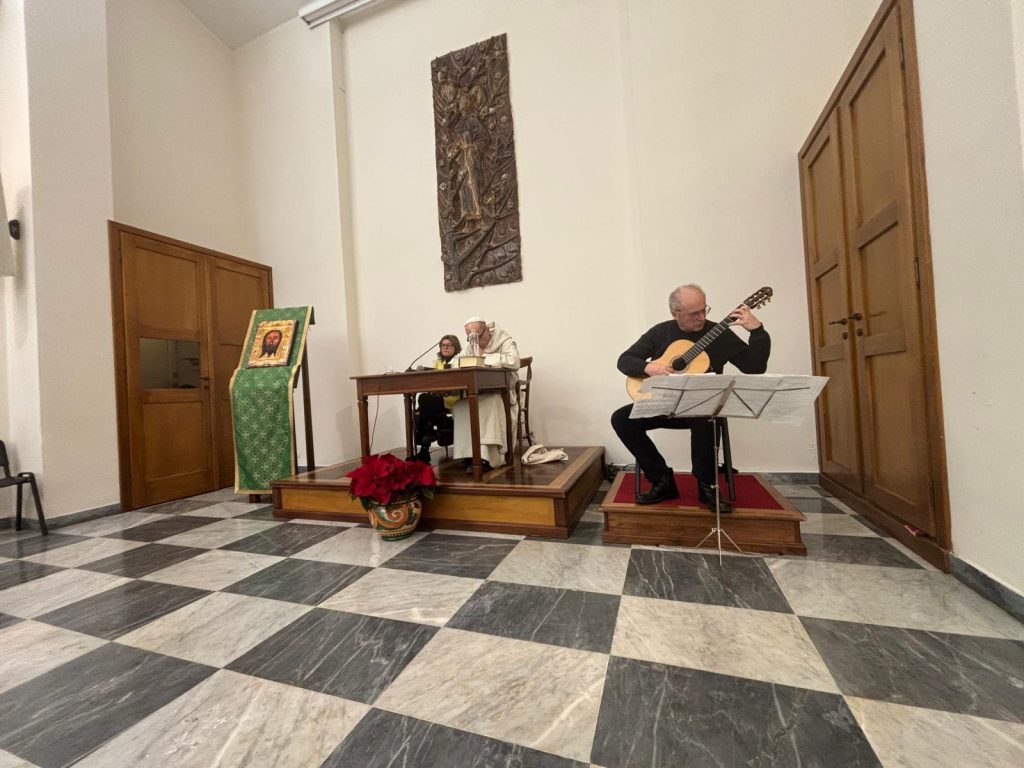 Concludendo con l’invito ad ascoltare i giovani, risorsa vera della chiesa. Gli interventi dei due relatori sono stati inframezzati dall’esecuzione musicale del prof. Fabrizio Giudice, docente di chitarra al Conservatorio “Paganini” di Genova. Con la sua chitarra il maestro ha proposto brani che sono stati particolarmente apprezzati dal pubblico presente per la loro bellezza e per la magistrale esecuzione. I brani proposti: Una limosna por el Amor de Dios” di Augustin Barrios Mangore, Fuga BWV 1000 (di J.S.Bach), Ave Maria (F. Schubert arr. Gorlin/Giudice) Padre Nazareno Fabretti (1920-1997), che volle e fondò la Sala Frate Sole nei locali dell’Annunziata (dove ospitò, fra gli altri, Giuseppe Dossetti e Giorgio La Pira, don Primo Mazzolari e don Lorenzo Milani, padre David Maria Turoldo ed Ernesto Balducci; inoltre invitava giornalisti come Enzo Biagi e Guglielmo Zucconi, gli attori di teatro in tournée a Genova, scrittori ed intellettuali), avrebbe gioito nel vedere in essa riuniti cristiani delle diverse confessioni, intenti ad ascoltare parole e musiche che parlavano alla mente e ai cuori.