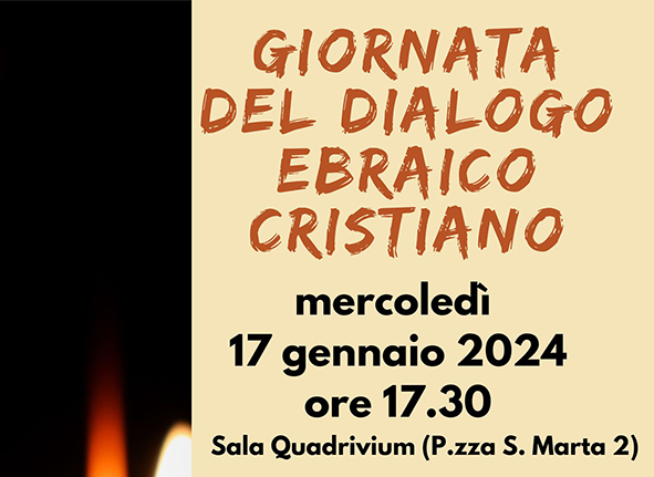 Come oramai accade dal 1989 anche il prossimo 17 gennaio si celebrerà la giornata del dialogo ebraico-cristiano. Quest’anno tutto si svolgerà presso la Sala Quadrivium adiacente alla Chiesa di Santa Marta a partire dalle ore 17.30.