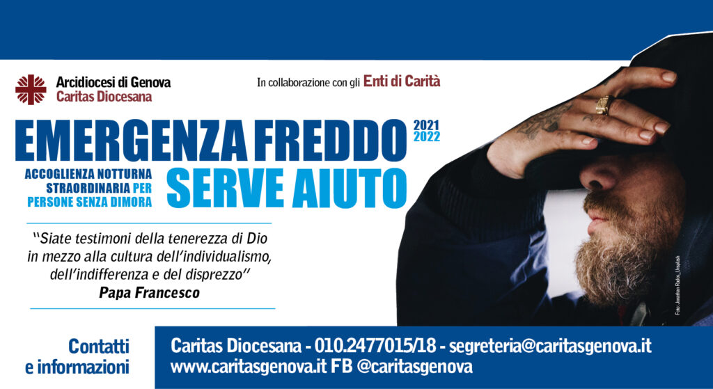 Le iniziative per proteggere dal freddo quante più persone possibile prevedono anche raccolta di coperte, sacchi a pelo e zaini per quanti, per motivi diversi, non accolgono l’invito a passare la notte presso l’accoglienza straordinaria. Una prima raccolta è già stata effettuata presso l’Oratorio della Parrocchia di N.S. Assunta di Sestri Ponente, il 19 e 20 novembre scorsi, e sono molti coloro che hanno portato il proprio contributo, sia in Sestri che dalla vicina Pegli.