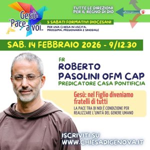 Sabato 14 febbraio 2026, dalle 9 alle 12.30, quarto incontro della Formazione Diocesana permanente e per tutti dal titolo “Gesù: Pace a voi“, edizione 2025/2026.