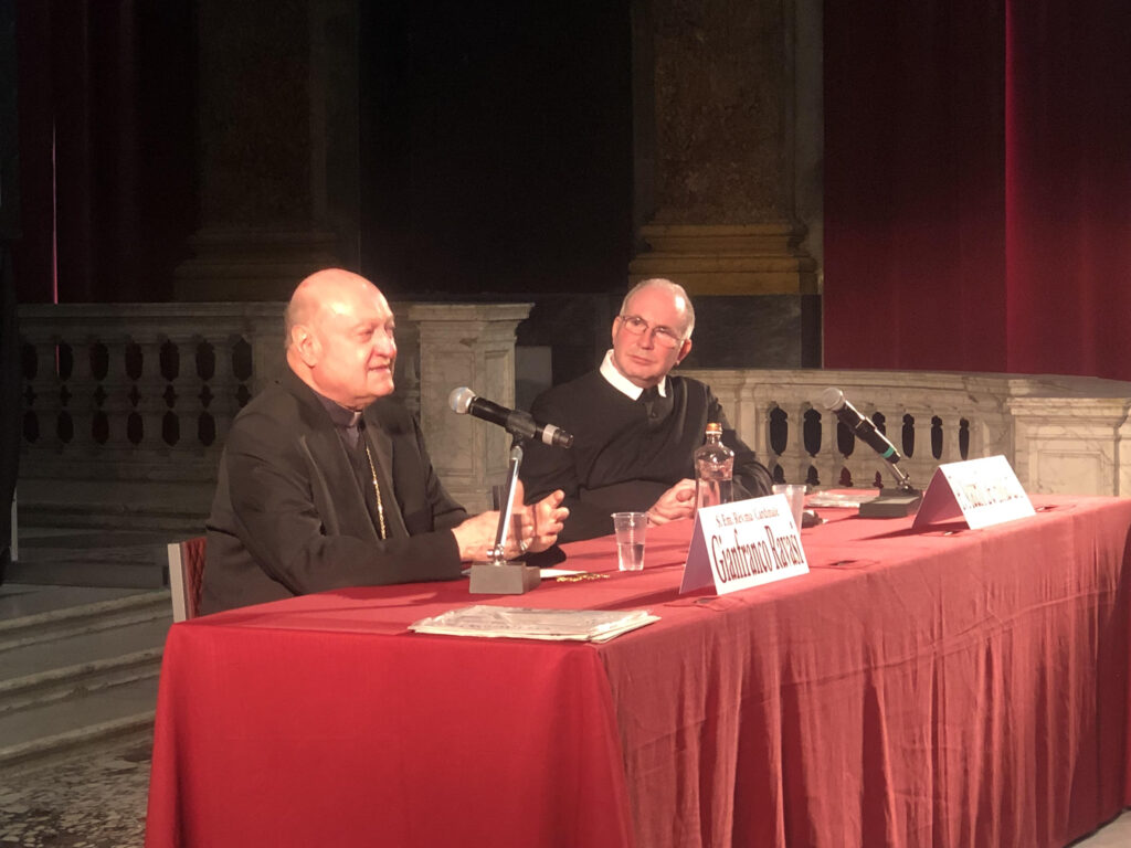 Sala del Maggior Consiglio di Palazzo Ducale gremita lo scorso mercoledì 19 aprile per l’appuntamento di “Incontro alla Città”, conferenza organizzata dall’Ufficio Cultura diocesano e che ha visto la partecipazione quale relatore del Cardinale Gianfranco Ravasi, biblista e teologo, già Presidente del Pontificio Consiglio della Cultura.