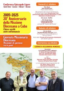 In occasione della Giornata Missionaria Mondiale che si celebra domenica 19 ottobre, la Conferenza episcopale ligure festeggia i 20 anni di presenza missionaria a Cuba nella Diocesi di Santa Clara.
