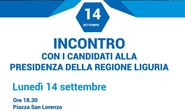 Lunedì 14 settembre alle ore 18.30 in Piazza San Lorenzo, di fronte alla Cattedrale di Genova è stato organizzato un incontro con i candidati alla Presidenza della Regione Liguria. A loro chiediamo che si impegnino con forza, coraggio e determinazione, di concerto con il Governo nazionale, per favorire la messa in opera dei cantieri che servono a far partire le grandi infrastrutture di cui ha bisogno la nostra città: la gronda, il completamente del terzo valico, il raddoppio del nodo ferroviario, la nuova diga che permetterebbe l’attracco delle grandi navi dell’estremo oriente e il riempimento a mare per Fincantieri con la costruzone di un grande bacino per la realizzazione delle nuove grandi navi da crociera. Vorremmo che il comparto delle Riparazioni Navali, che conta più di 2.000 addetti, fosse riconosciuto come una risorsa e non come un peso. Questo settore sarà il grande business dei prossimi anni, quando, le grandi navi uscite dai cantieri in questi anni, avranno bisogno di manutenzione. Per poter accogliere queste navi in bacino però occorrono strutture e infrastrutture che non si improvvisano da un giorno all’altro.