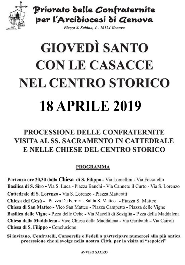 Siete tutti invitati alla tradizionale, antichissima processione che si fa a Genova dalle Confraternite, gia menzionata da Agostino Giustiniani nel suo libro del 1535.