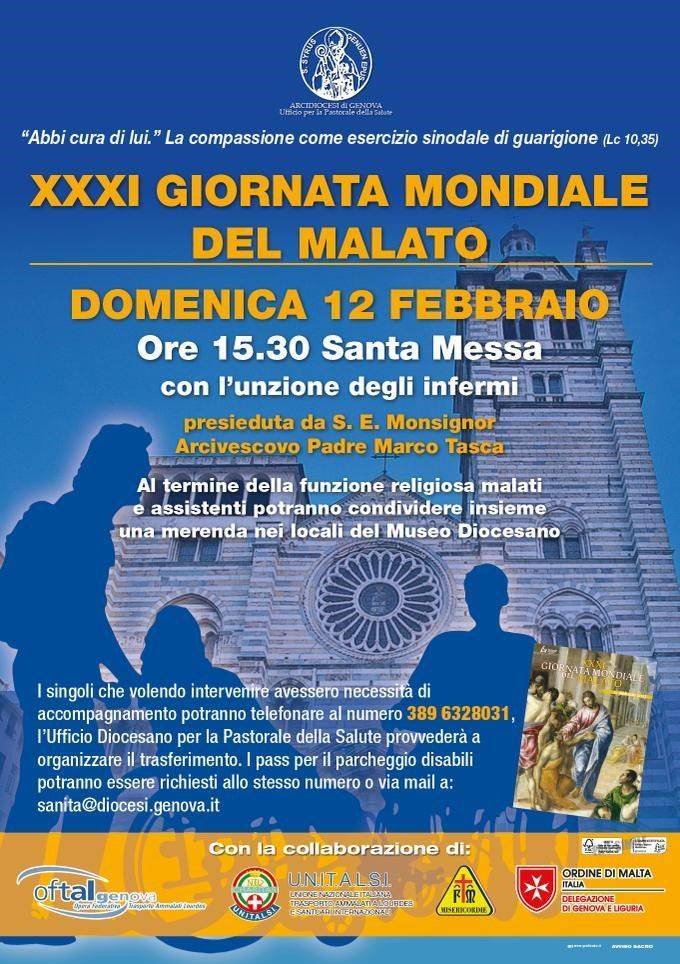 In occasione della XXXI Giornata Mondiale del Malato, domenica 12 febbraio alle ore 15.30 Mons. Marco Tasca celebra la S. Messa in Cattedrale. Durante la celebrazione avverrà l’unzione degli infermi.