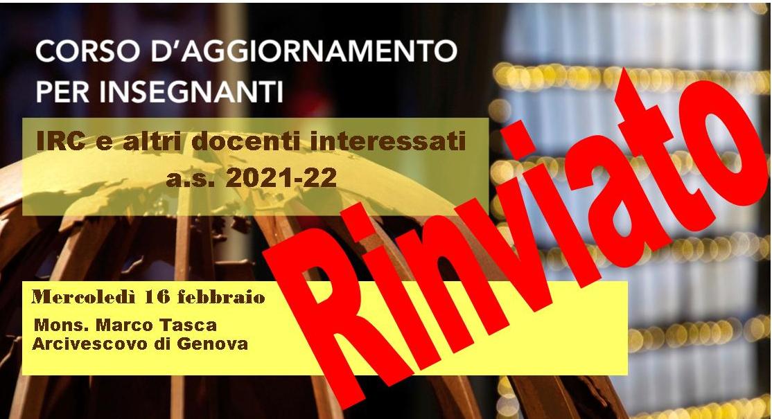 RINVIATO A DATA DA DESTINARSI l’incontro di aggiornamento di mercoledì 16 febbraio 2022 con l’Arcivescovo Mons. M. Tasca