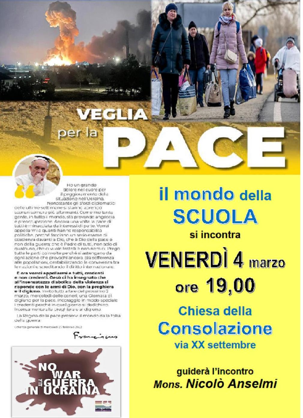 Venerdì 4 marzo 2022 nella Chiesa della Consolazione il mondo della scuola in preghiera per la pace