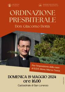 Domenica 19 maggio 2024 alle ore 16 in Cattedrale, nella solennità di Pentecoste, Don Giacomo Dotta sarà ordinato presbitero per l’imposizione delle mani di Mons. Marco Tasca.
