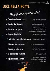 Tutte le date dell’anno 2025 – 2026 di “Luce nella Notte”, la preghiera per le Vocazioni che si svolge in Seminario a partire dalle ore 21