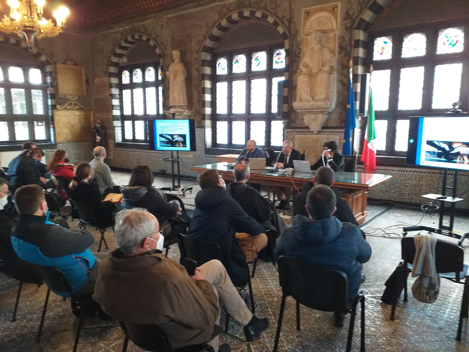 La Diocesi ha desiderato ospitare questo evento, e lo ha organizzato attraverso l’Ufficio per la Pastorale sociale e del lavoro, che si è avvalso della collaborazione del Villaggio del Ragazzo, degli albergatori di Chiavari, che hanno aperto le loro strutture garantendo la possibilità di svolgere le varie attività previste, e dell’Istituto Caboto, che ha messo a disposizione i suoi studenti e le sue studentesse per un periodo formativo impostato sull’accoglienza. Un gruppo di volontari ha supportato le fasi dei trasferimenti in città. Il Comune ha concesso l’Auditorium e ha garantito il suo supporto nelle fasi organizzative. Un insieme di apporti che in qualche modo è stata prova della possibilità di trasformare Chiavari, per qualche giorno, nella location perfetta per trascorrere giornate di approfondimento e di dialogo. I delegati hanno mostrato interesse per la sua storia e le tradizioni locali (a far mostra di sé nell’Auditorium San Francesco il meraviglioso Crocifisso processionale opera dello scultore Francesco Dallorso custodito nell’Oratorio della Santissima Trinità di Lavagna), hanno apprezzato la gastronomia e le realtà commerciali, hanno scoperto il Mercatino dell’Antiquariato, e hanno vissuto per qualche giorno l’atmosfera accogliente della città a misura d’uomo.