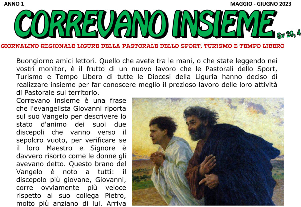 È disponibile in allegato il primo numero in formato .pdf di Correvano insieme, il giornalino regionale della Pastorale dello Sport, Turismo e Tempo libero, realizzato con il contributo degli incaricati delle Diocesi liguri.