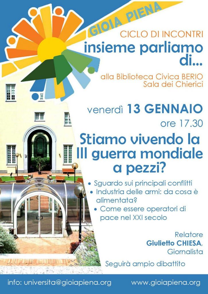 Sono qui perché sono stato chiamato dai giovani, così ha esordito il Giornalista Giulietto Chiesa, fondatore della web-tv Pandora TV, in una sala dei Chierici (Biblioteca Berio) gremita oltre la capienza naturale nellevento organizzato dai ragazzi del gruppo università di GioiaPiena. Il suo intervento accalorato comincia con una denuncia senza mezzi termini verso tutti i media principali, accusati di nascondere e distorcere volutamente linformazione allo scopo di piegarla al Pensiero Unico. I media, infatti, sarebbero in mano a un élite destrazione economico-finanziaria così come leconomia mondiale, controllata principalmente da due o trecento padroni universali appartenenti in larga parte allOccidente. Negli ultimi 30 anni hanno accresciuto la loro ricchezza senza sosta sino a inventarsi la finanza speculativa, fatta di prodotti finanziari che gonfia leconomia reale attraverso la creazione di denaro elettronico. Tuttavia, come ha dichiarato il magnate Rotshild poco tempo fa, adesso stiamo entrando in acque inesplorate. La produzione di merci non cresce più, per la prima volta le nuove generazioni sanno che vivranno peggio dei genitori; inoltre, rispetto agli anni 90, sono sorti giganti che possono fermare i piani egemonici occidentali: la Cina, che è diventata la principale potenza economica quando 60 anni fa era un paese del terzo mondo, e la Russia che ha ricostituito un arsenale militare capace ormai di resistere allesercito della NATO. Il vero rischio di una guerra mondiale è rappresentato dallapparato economico-militare degli USA che crede di fare anche del XXI secolo un secolo americano. Gli eserciti nato capitanati dagli USA si stanno preparando da tempo a debellare chiunque persegua una politica autonoma, in primis Russia e Cina. Giulietto si è poi riservato di offrire anche qualche prospettiva sul che fare. Innanzi tutto, avverte, ciascuno legga e studi continuamente anche attraverso canali dinformazione alternativi e ciascuno allarghi le proprie conoscenze agli altri. Infine, il giornalista ha fatto appello alla difesa del territorio: prima di tutto difendere le nostre teste dai media e dalla pubblicità; in secundis, ciascuno nel proprio contesto cittadino si aggreghi per difendere e recuperare il patrimonio pubblico e paesaggistico, citando ad esempio il movimento NO TAV. È seguito un partecipato dibattito con molte domande e osservazioni fatte anche dai ragazzi, che sarebbe proseguito ben oltre lorario di chiusura della sala.