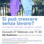 La questione del lavoro è oggi per i giovani decisiva.Caritas, Ufficio per la Pastorale Sociale e del Lavoro, servizio diocesano per la Pastorale Giovanile ed un gran numero di associazioni si sono unite per affrontare il problema. Giovedi alle ore 17.30 presso la Sala Quadrivium ci sarà l incontro “Senza lavoro si può crescere?” durante […]