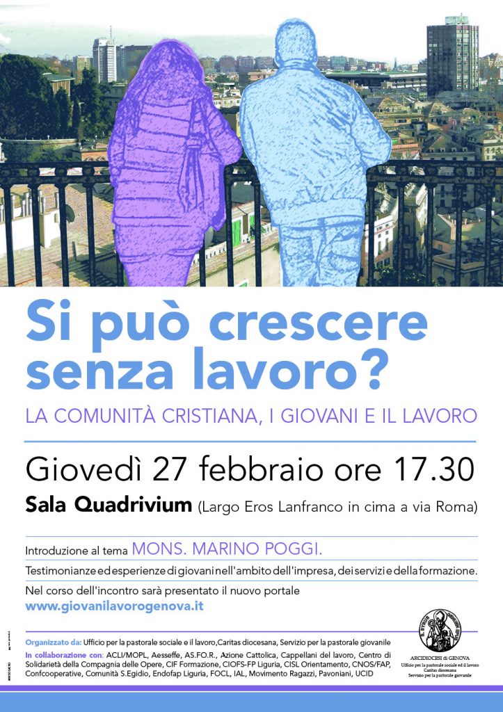 La questione del lavoro è oggi per i giovani decisiva.Caritas, Ufficio per la Pastorale Sociale e del Lavoro, servizio diocesano per la Pastorale Giovanile ed un gran numero di associazioni si sono unite per affrontare il problema. Giovedi alle ore 17.30 presso la Sala Quadrivium ci sarà l incontro “Senza lavoro si può crescere?” durante il quale sarà presentato un nuovo portale informatico al servizio dei giovani, del lavoro e delle comunità cristiane.