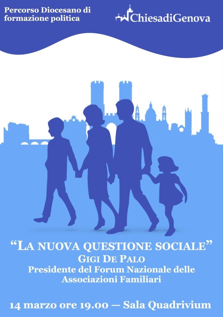 Nell’ambito degli incontri del Percorso diocesano di formazione politica alla luce della Dottrina Sociale della Chiesa, lunedì 14 marzo alle ore 19 alla Sala Quadrivium Gigi De Palo, Presidente del Forum Nazionale delle Associazioni Familiari interviene su “La nuova questione sociale”.