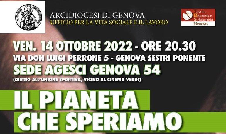 Venerdì 14 ottobre alle ore 20.30, presso la sede Agesci Genova 54 di Via don Luigi Perrone 5, a Sestri Ponente, terzo appuntamento per il ciclo diocesano dedicato a “Il pianeta che speriamo” promosso dal Tavolo Giustizia e Solidarietà e dall’Ufficio per la Vita Sociale e il Lavoro, con il coinvolgimento prezioso delle comunità del territorio.