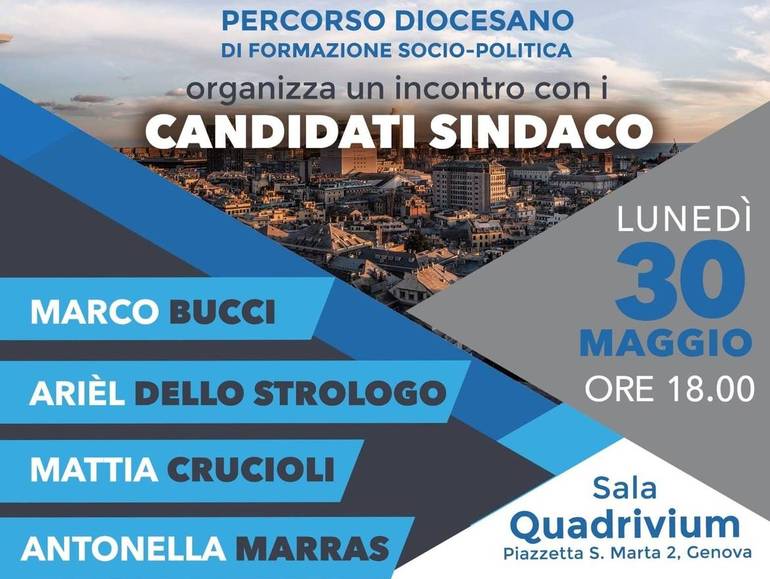 Attualmente, il Percorso Diocesano di Formazione Politica sta organizzando un incontro con i candidati a sindaco della nostra città che si svolgerà lunedì 30 maggio alle ore 18 presso la Sala Quadrivium (l’incontro è libero e aperto a tutti).
