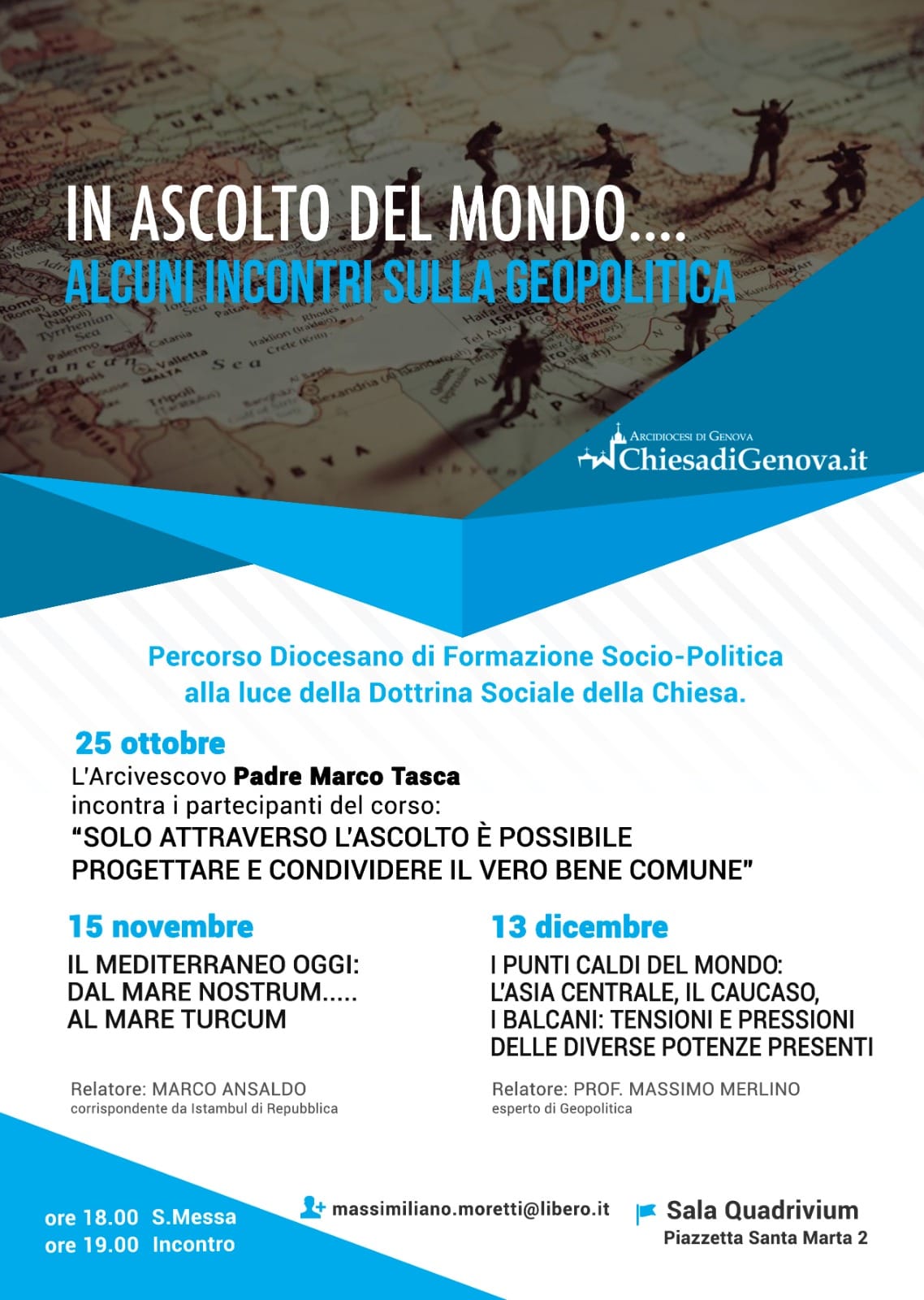 Riprende il percorso diocesano di formazione socio-politica alla luce della Dottrina sociale della Chiesa, quest’anno sul tema “In ascolto del mondo… alcuni incontri sulla geopolitica”.
