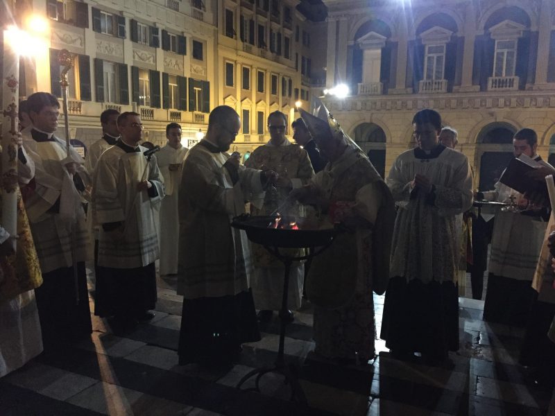 1. Questa è la notte nella quale Cristo ha vinto le tenebre del peccato con lo splendore della colonna di fuoco! La notte è il momento in cui Gesù risorge non per tornare alla vita di prima, ma per entrare nella vita nuova e gloriosa del cielo. La nostra esistenza ci riserva luci e ombre, gioie e tribolazioni, speranze e delusioni. Non è forse questo l’impasto della nostra storia? Non sentiamo tutti – se abbiamo il coraggio di ascoltare il nostro cuore e non il chiasso che stordisce e confonde – una nostalgia sottile di un mondo diverso, di una pienezza di vita, di un amore affidabile, di legami solidi e sinceri? E non vediamo forse che tutto questo fa parte di ciò che è più profondo di ciò che siamo e che abbiamo? Siamo come una freccia che dalla terra è tesa verso il cielo, dal tempo verso leterno, dalle nostre miserie verso l’infinito e l’assoluto che sentiamo essere il nostro destino. Tutto questo, questo tormento interiore che brucia come una ferita salata, una grazia. Siamo stati creati con questa tensione perché non ci accontentassimo di nulla che fosse meno di Dio. Tutto ciò che di bello e nobile abbiamo, la gioia di vivere e di amare, è solo un anticipo, un riflesso della luce che ci attende. Cari amici, senza la grande luce di Cristo, le nostre piccole luci si spengono, così come senza il grande bene che è io, neppure i beni umani sono possibili, perché incerti e deboli.